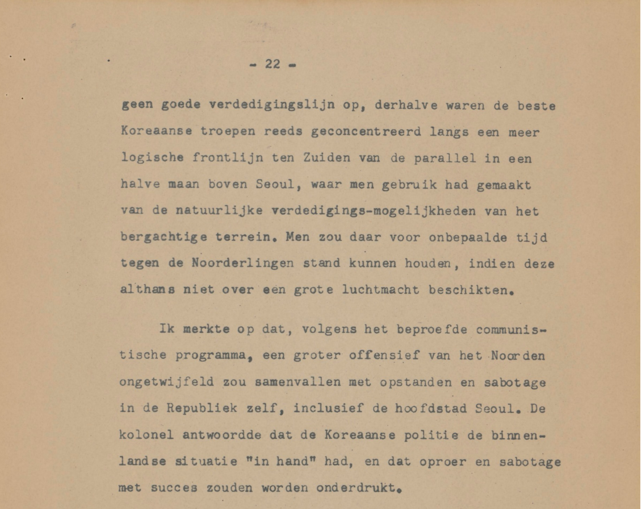 Van Gulik’s sharp eyes do not miss the problems of the Rhee administration, its corruption, its unrealistic assessment of its own strengths vis-à-vis North Korea, the fraught security situation within South Korea (pp. 14-20). At the same time, he writes down how he reached out to opposition figures, just in case “the Rhee government would leave the stage.” (p. 19). He shows an acute sense of the military situation when he mentions the 12,000 North Korean troops fighting in Manchuria for the Chinese communists and what would happen to the equilibrium on the Korean peninsula when they would return (p. 21), but lacks the sense of urgency that, perhaps in hindsight, might be expected, given the outbreak of the Korean War a mere eight months later. A potential outbreak of hostilities is not treated seriously in the report.